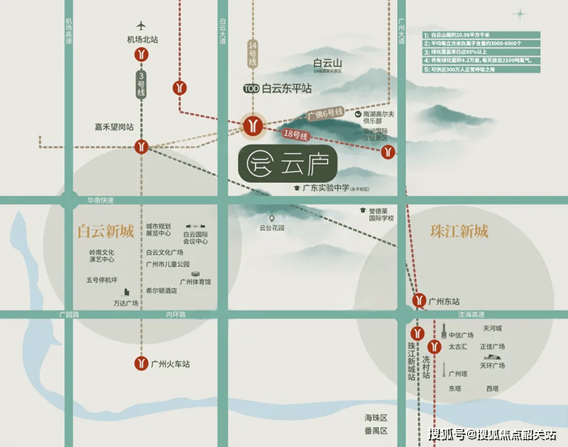 作为由广州地铁集团亲自操盘开发的品质住区,云庐不仅坐拥地铁14号线米的黄金距离,更被规划中的18号线北延段所环绕,未来直达珠江新城、琶洲、天河北仅需数站。与此同时,步行800米即达广东实验中学永平校区,孩子上学真正实现“目送式”教育;推窗见山,白云山绿意扑面而来,负氧离子含量高达9000个/m³,都市繁华与自然静谧在此完美交汇。