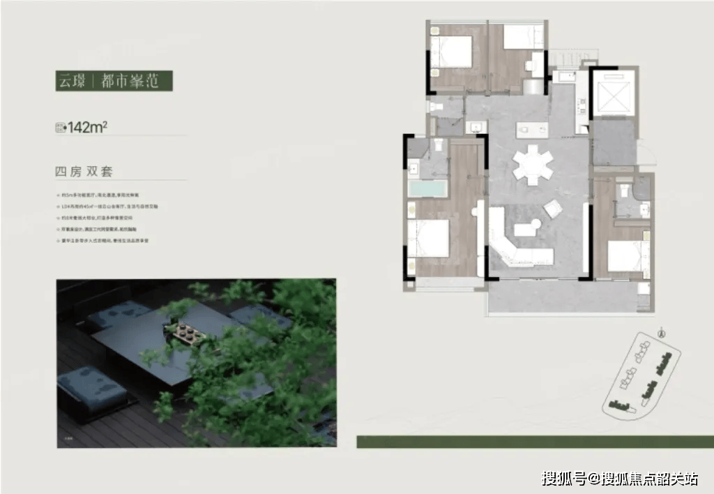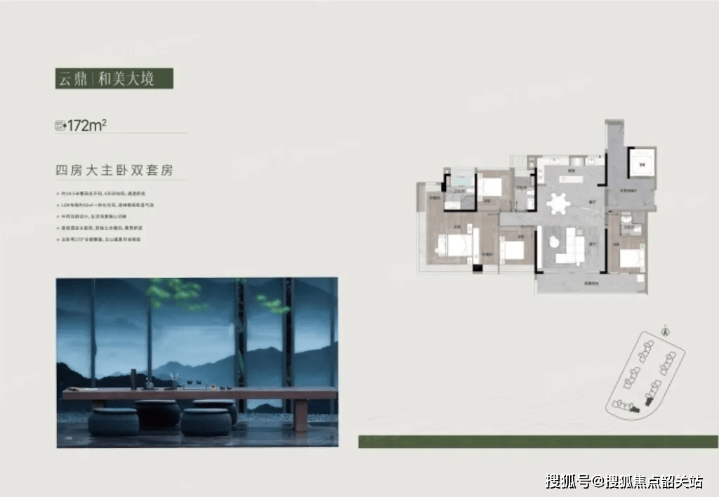 一梯一户板式结构,私密性极佳,得房率高达83%-86%,远超市场平均水平。▶ 128㎡四房:南向11.2米面宽,总价576万起