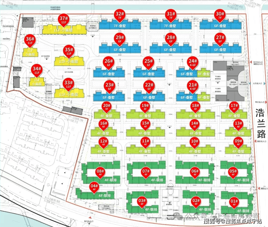 土地用途普通商品房,容积率1.01;由5幢11F小高层住宅、32幢4-7F多层住宅以及若干社区配套用房组成,共计规划约656套可售住宅;其中小高层住宅198套,4F鲁墅约128套,6-7F墅约248套,4F联排产品约82套!