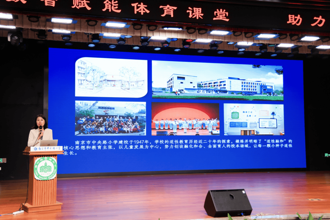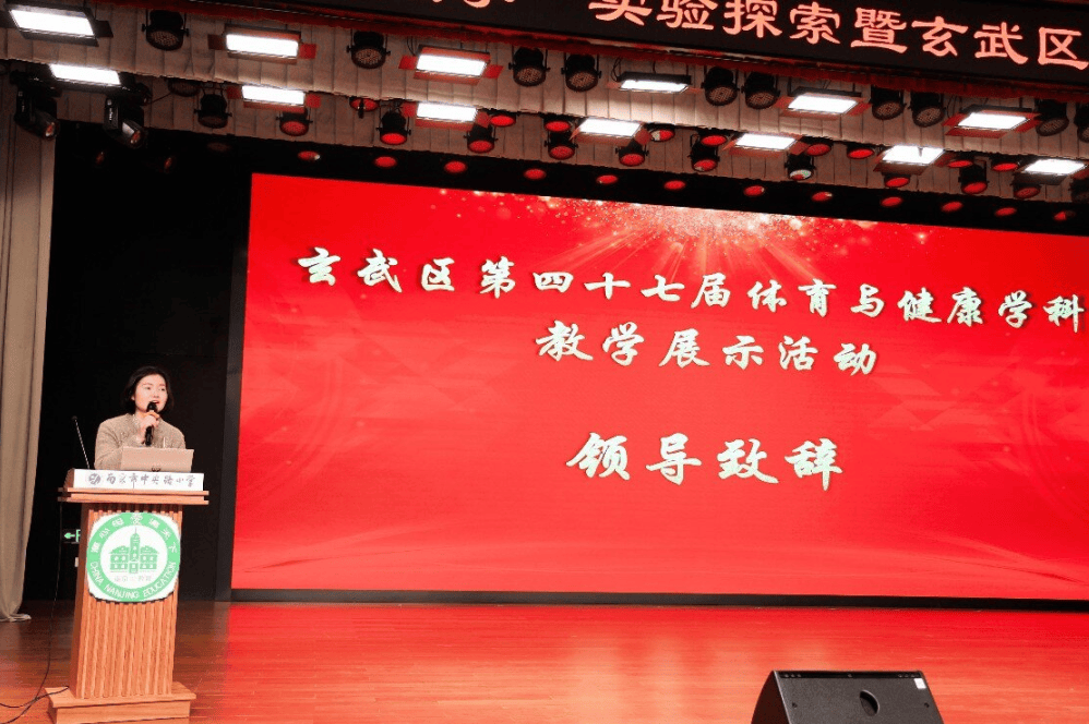 阳光体育大课堂展示结束后,与会教师移步报告厅,进行教学研讨环节。中央路小学书记、校长陆文琦发表了温暖而有力的致辞。陆校长首先向莅临指导的领导、教研专家、各校体育同仁表示热烈欢迎,祝愿所有老师继续以“智”促教、以“慧”润体、以“爱”筑基,让每一节体育课都闪耀理性之光与人性之暖,让玄武学子以强健之躯承载中国梦想,以智慧之心奔赴时代山海。
