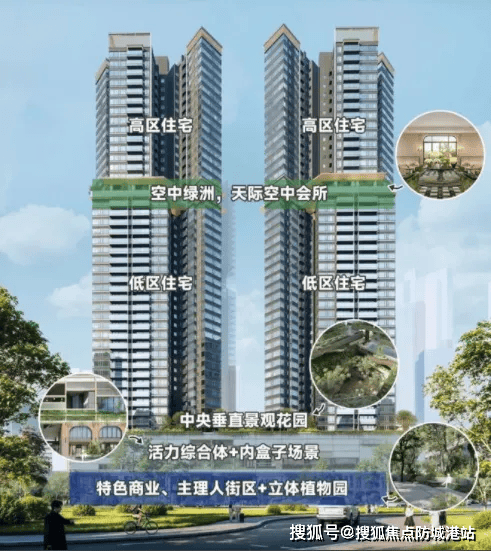 项目规划4栋44-45层超高层住宅,共844户。为提升体验,创新采用**高低分区设计**: