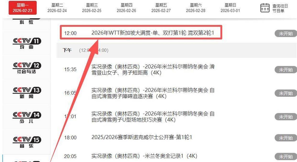 从今天,也就是2026年2月23日开始,想看球你得记住两个新时间:中午的鏖战,你得锁定CCTV5 ,从12点就开始;而晚上黄金时间的压轴大戏,则移师回了CCTV5,晚上7点半准时开播。